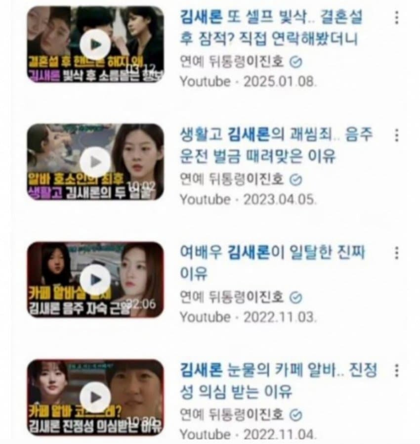 이진호가 김새론 관련 영상들 올린건 전부