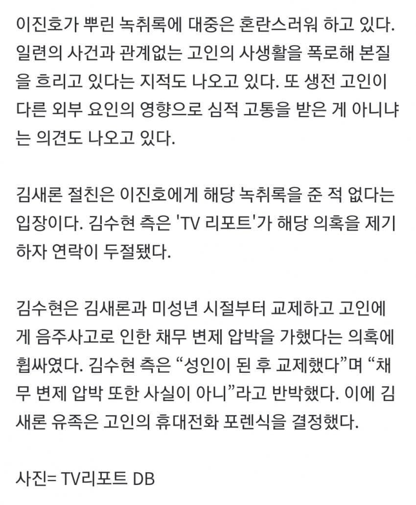 논란을 잠재우려고 김새론을 문란한 여자로 만들었음