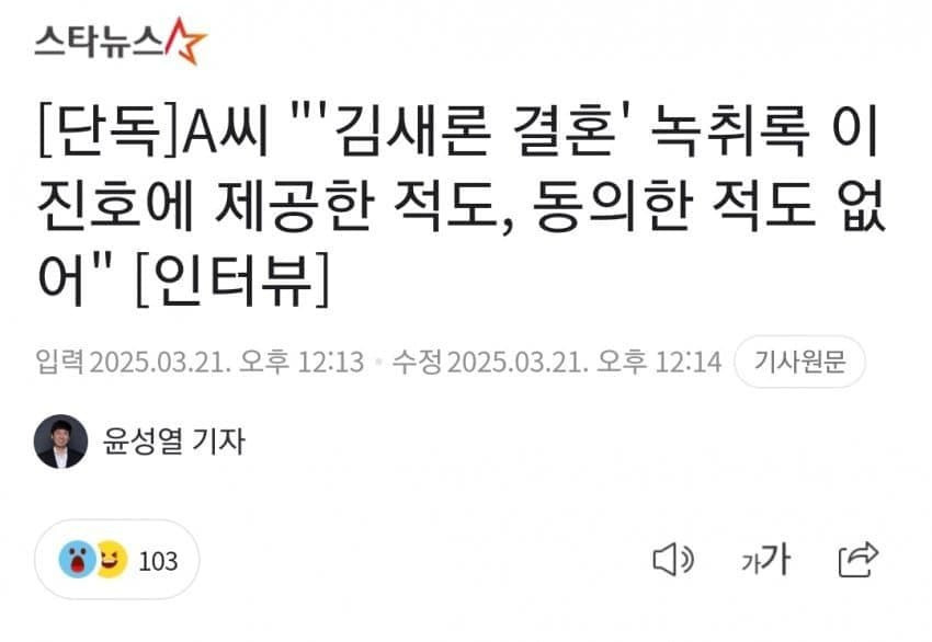 결혼 녹취록을 이진호에게 준것처럼