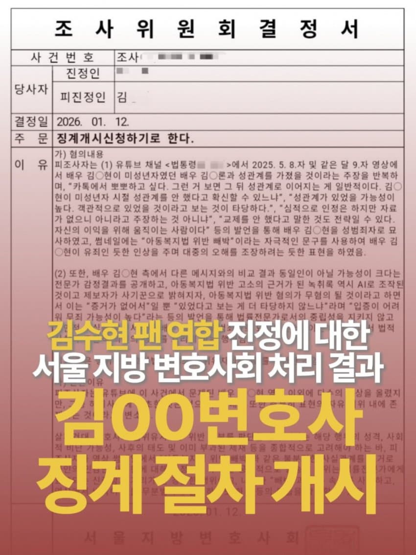 [김ㅇㅇ변호사 징계 절차 개시]