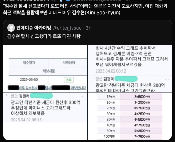 충격! "톱스타라고 자처하더니 탈세라니?" 김수현, 300억 원대 탈세 혐의로 조사 중! 골드메달리스트는 사실상 파산 직전