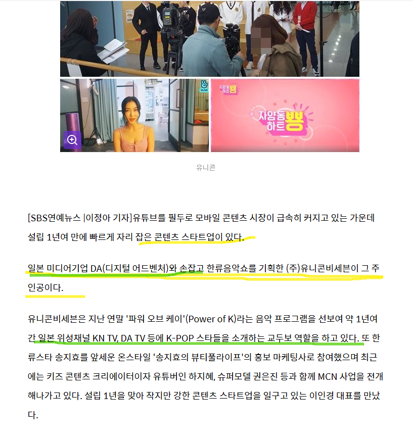 1) kn tv와 손잡고 한류음악프로그램을 진행하는 회사고, kn tv 에 한류음악을 방송하면서 돈을 버는 회사입니다